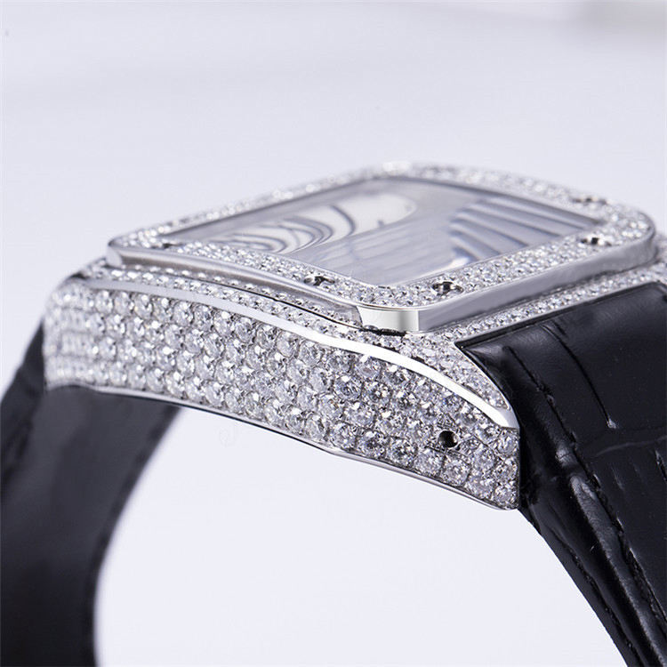 Montre automatique squelette haut de gamme 40 mm avec diamants Moissanite VVS 1 carat entièrement sertis en acier inoxydable, style luxe hip-hop, bracelet en verre