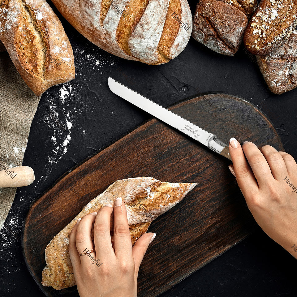 Premium 5-Piece Kitchen Knives Stainless Steel Laguiole Chef Knife Set with Olive Wood Handle and Acacia Magnetic Knife Holder