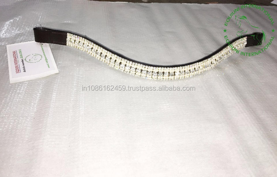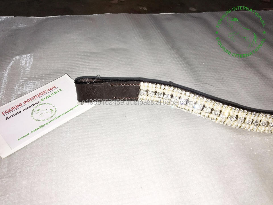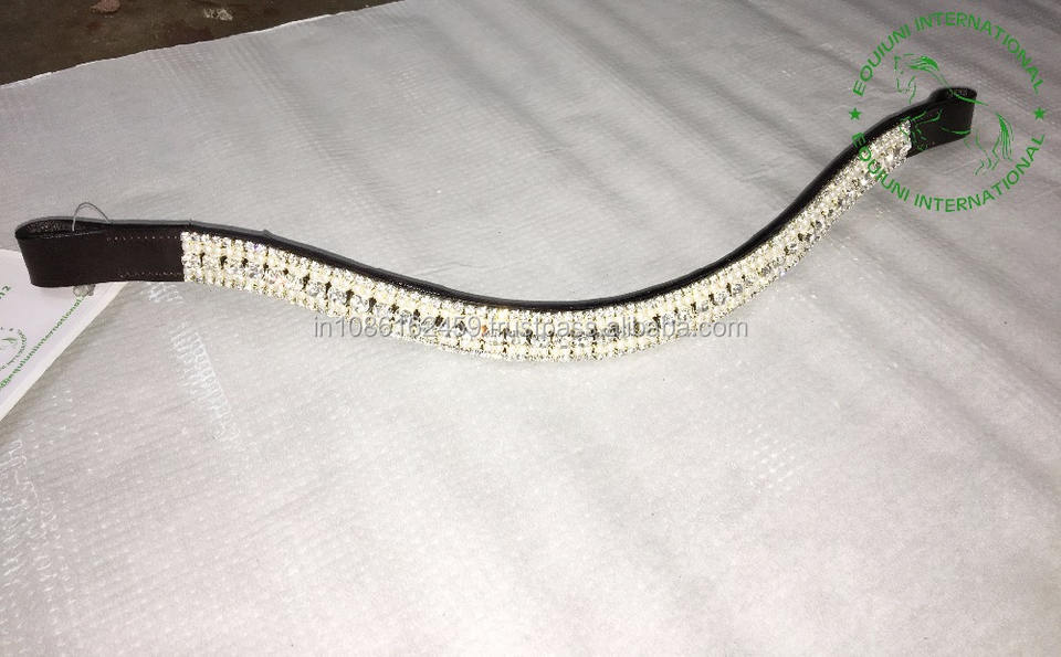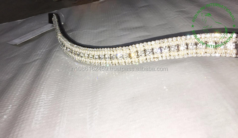 Bandeau de tête en cuir de qualité supérieure à 5 rangées de cristaux, durable et décoratif, pour l'entraînement et les compétitions