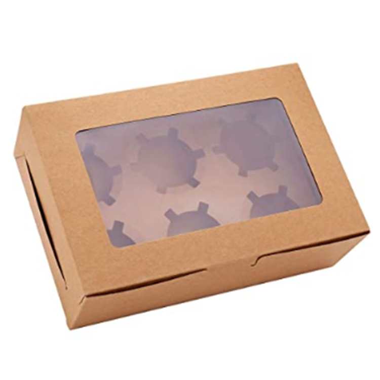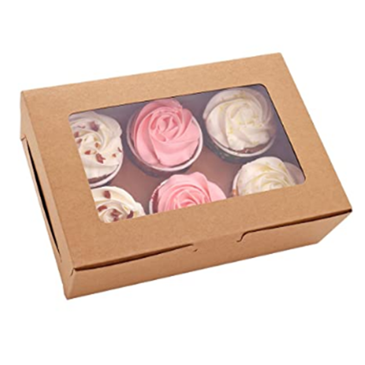 Boîtes à cupcakes en carton recyclable de qualité supérieure à 6 compartiments avec fenêtre et revêtement UV pour la vente au détail de pâtisseries et l'usage domestique