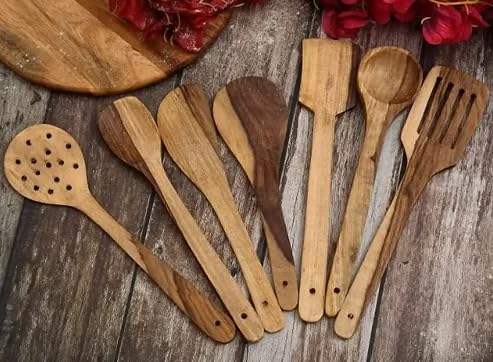 Premium 7PCS Wooden Cooking Spoon Set Handmade Wooden Utensils for Nonstick Cookware Frying Spoon Ladles & Spatula For Kitchen