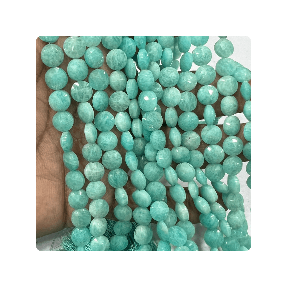 Perles de pierres précieuses en Amazonite bleue naturelle de 8mm environ 8 pouces à facettes en forme de pièce de monnaie semi-précieuse fabrication de bijoux certifiée