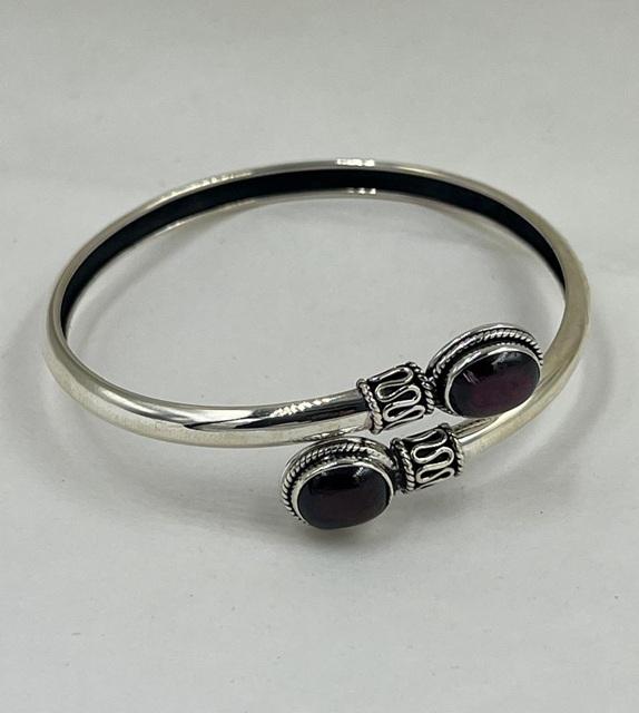 picture:Silver Garnet Oval Gemstone Cuff Bangle