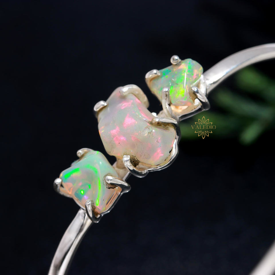 Bracelet jonc ajustable en argent sterling 925 de qualité supérieure, finition haut de gamme, tendance, serti de pierres, opale éthiopienne, cadeau pour femme au meilleur prix