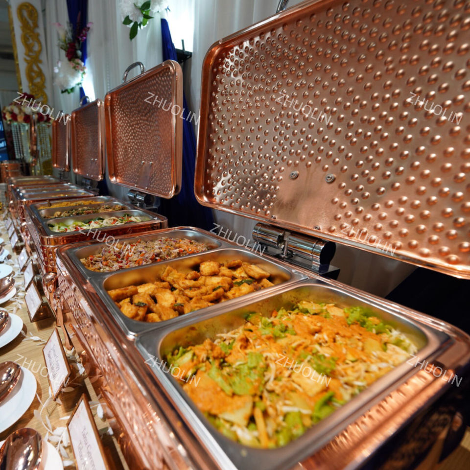 Premium 9L Or Rose Rectangulaire De Luxe Chauffer Plats À Chauffer Buffetware pour Ramadan Essentials Superbe Arabe Martelé