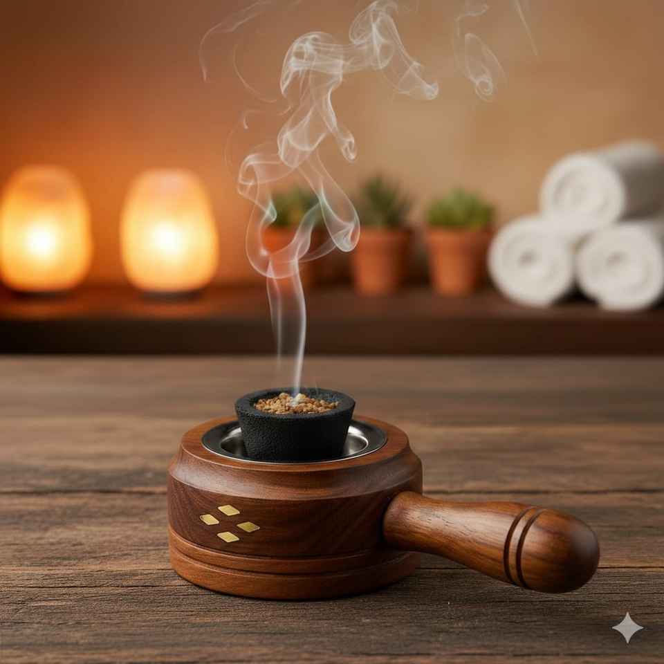 Brûleur à Bakhoor en bois d'acacia de qualité supérieure avec incrustation de résine, artisanal, religieux, diffuseur d'aromathérapie, décoratif, encens