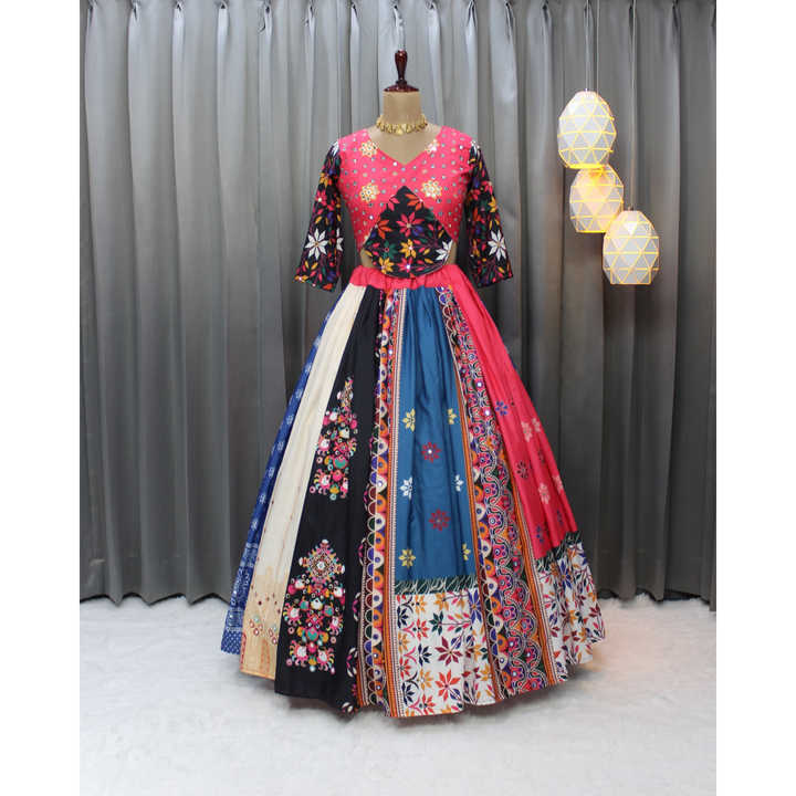 Choli Work:Fancy Digital Print Work & Real Mirror Work