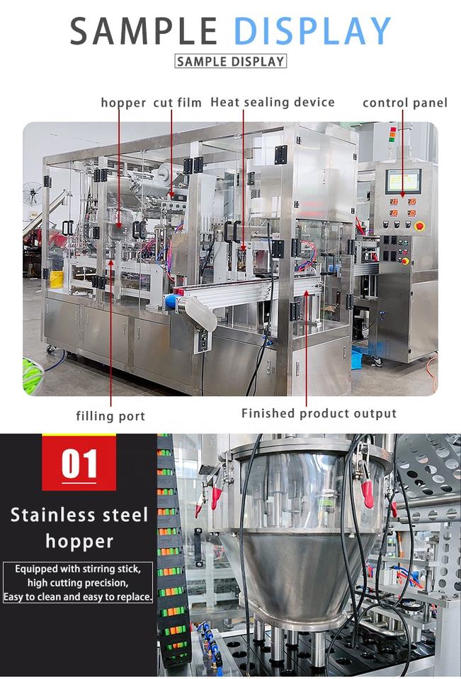 Composants essentiels:PLC, interface homme-machine, Contrôleur de température, Relais statique solide, Relais intermédiaire, Capteur, Servomoteur de remplissage, Tasse Secrew laissant tomber le servomoteur, Contacteur CA