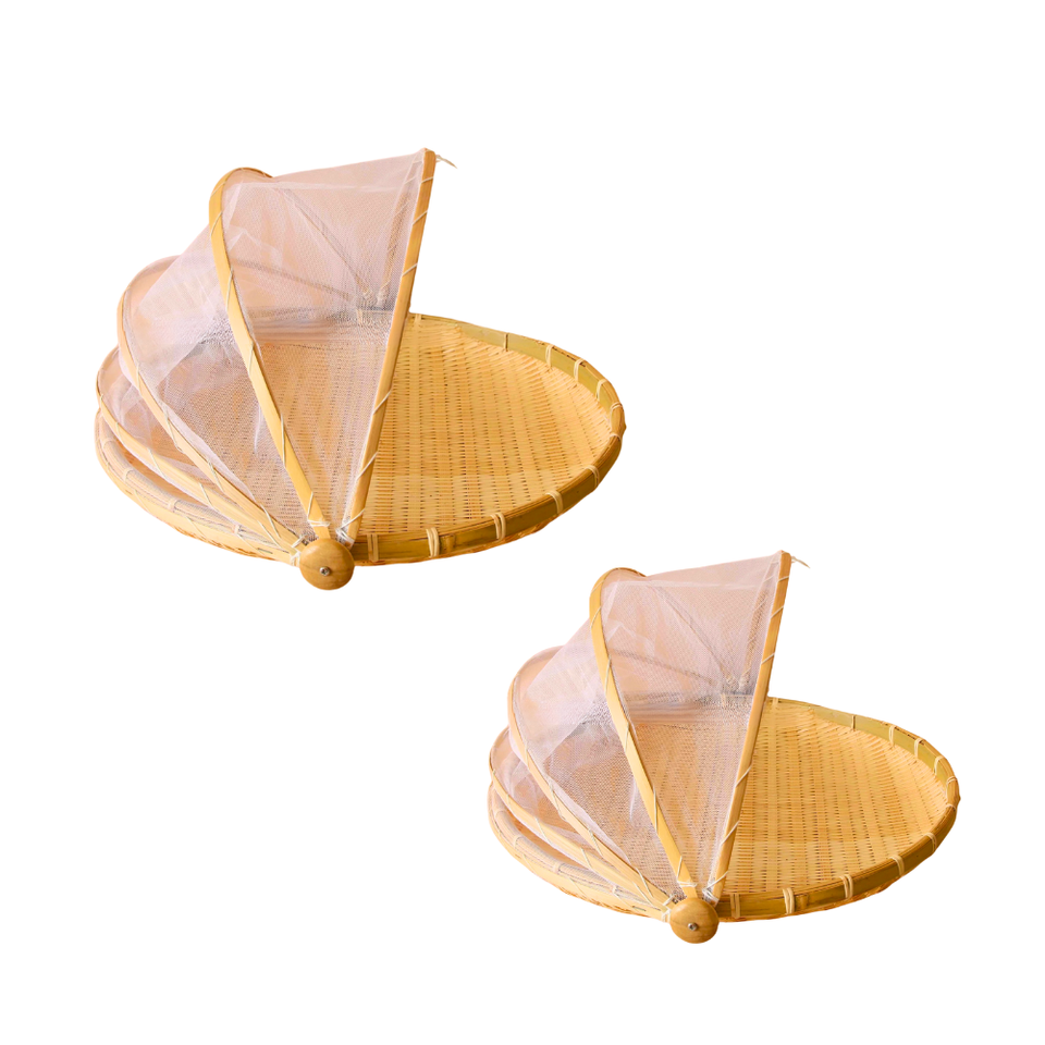 Plateau en bambou premium avec filet en maille, fournisseur vietnamien traditionnel et écologique, couvercle alimentaire respirant, accessoire de cuisine écologique