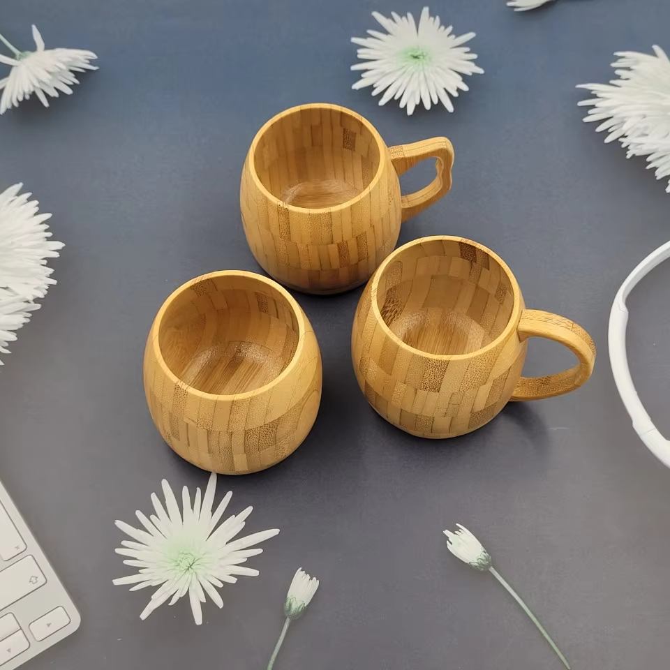 Premium Bamboo Mug avec poignée:Taille: D3,9 x H2,8 pouces