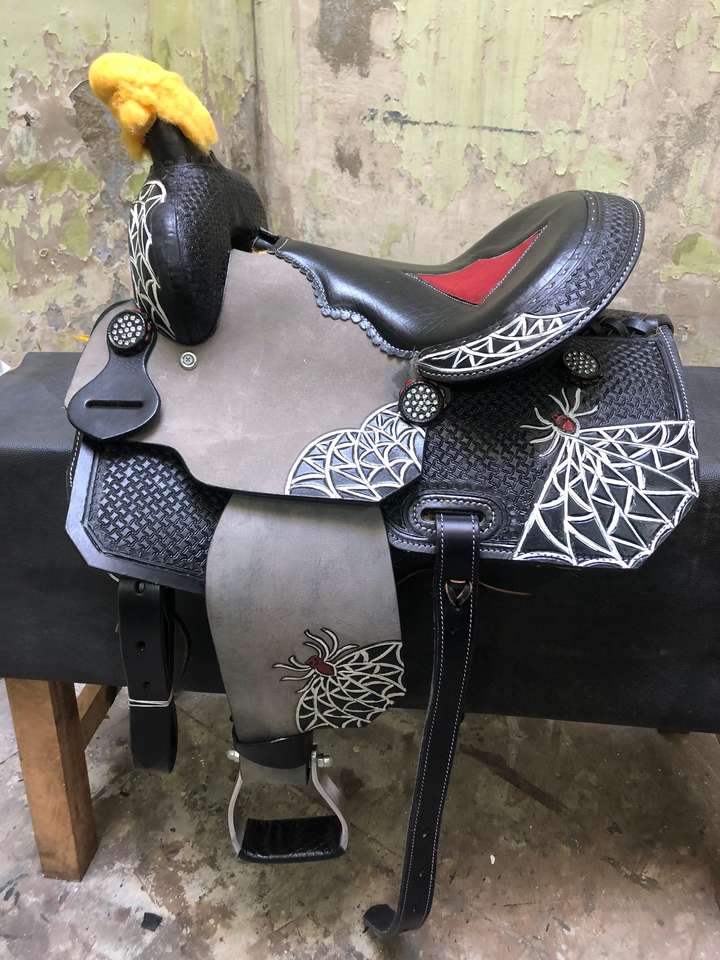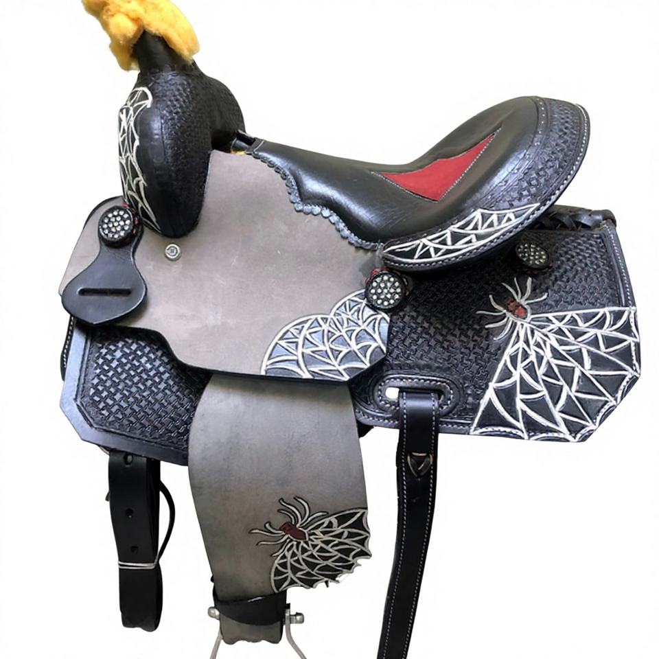 Ensemble de selle western en cuir haut de gamme avec motif Barrel Racing et arceau en bois | Ensemble de fixation sans clou pour équipement d'équitation en acier inoxydable, façonné à la main