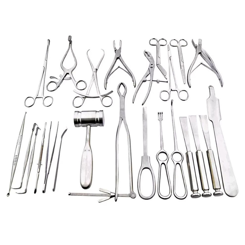 Kit chirurgical orthopédique de base en acier inoxydable de qualité supérieure, 25 pièces, comprenant rongeurs osseux et ostéotomes, avec étui de stérilisation, certifié CE ISO, pour fabricants B2B