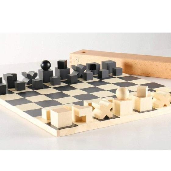 Jeu d'échecs géométrique de style Bauhaus haut de gamme | Échiquier Minimaliste en Bois Naturel Poli à la Main, Sculpture d'Art Moderne, Jeu d'Échecs