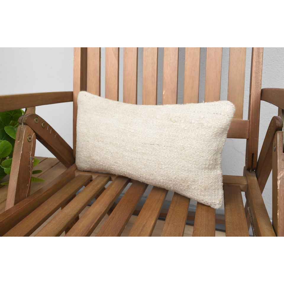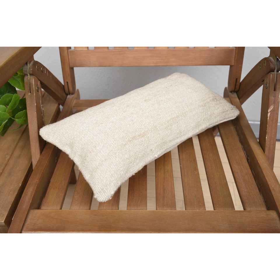 Oreiller en laine Kilim turque Beige Premium 8x16 pouces Oreiller décoratif d'accent de luxe Style tissé à motif moelleux Vintage pour la literie