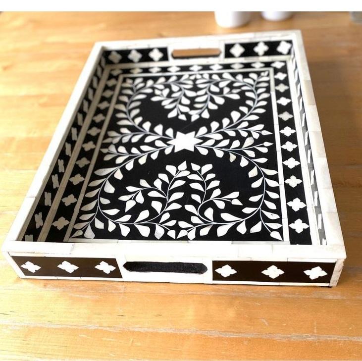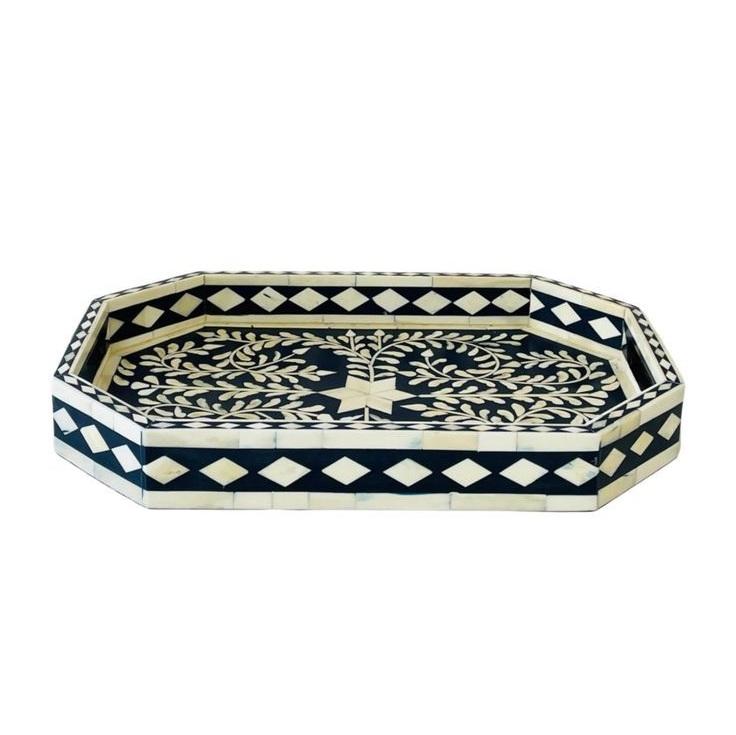 Plateau de service Art Déco en incrustation d'os de qualité supérieure, élégant, fait à la main, design multifonctionnel pour mariage, Ramadan et Eid