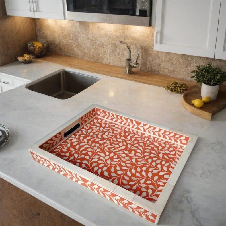 Plateau de service haut de gamme en os incrusté avec poignées pour cuisine et salon