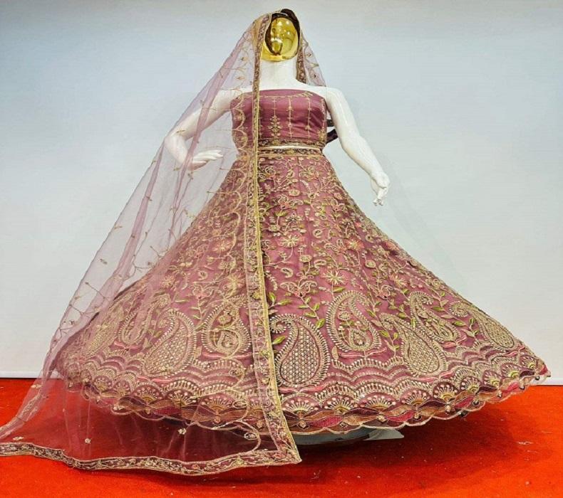Collection de tenues de mariée haut de gamme : Superpositions en filet de polyester brodé, infroissables, avec une richesse d'ornements de surface coordonnés