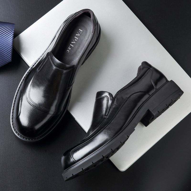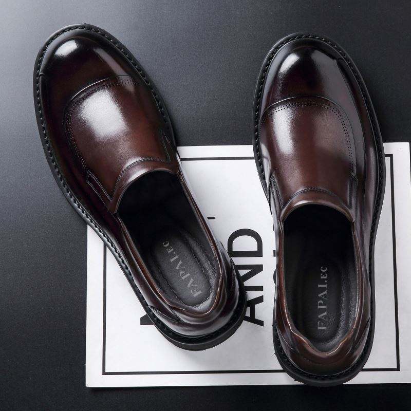 Chaussures pour hommes en cuir de vachette de style britannique haut de gamme, mi-mollet, décontractées, confortables, à enfiler, pour l'automne