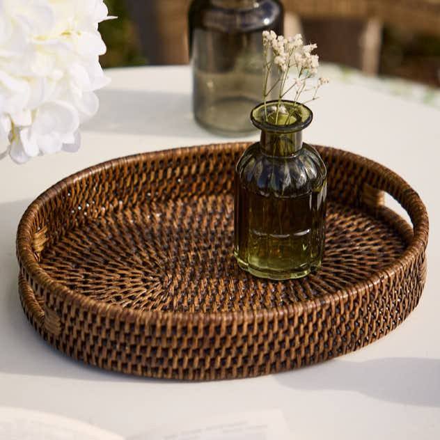 Plateau d'affichage en rotin brun de qualité supérieure-Organisateur de vanité et accessoire de salle de bain | Nettoyage des taches uniquement | Vente en gros Tienphong 2025