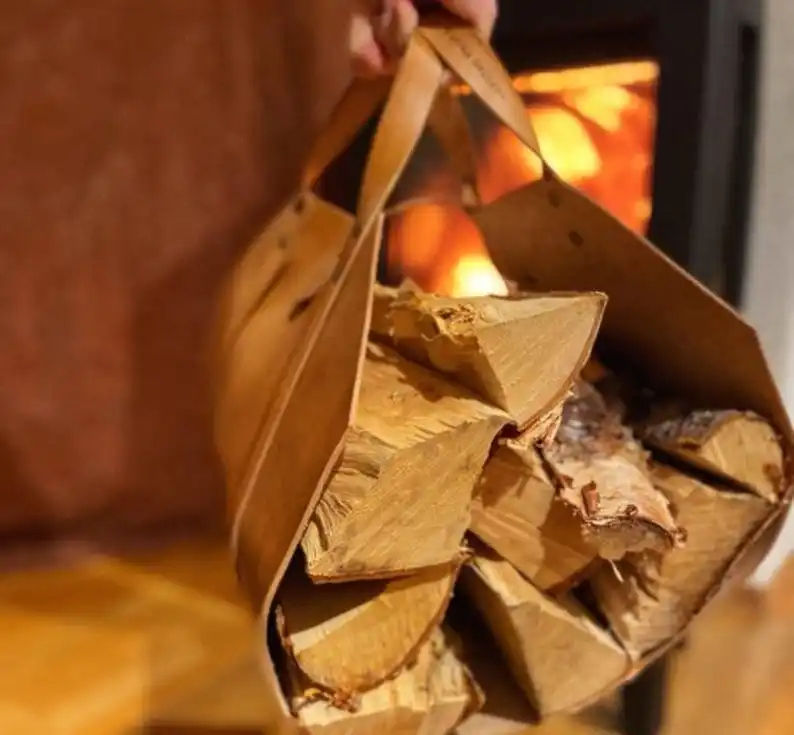 Premium Buffalo Leather Luxury Casual Smell Proof Heavy Duty Firewood Carrier Handcrafted Log Bag for Wood Carrying