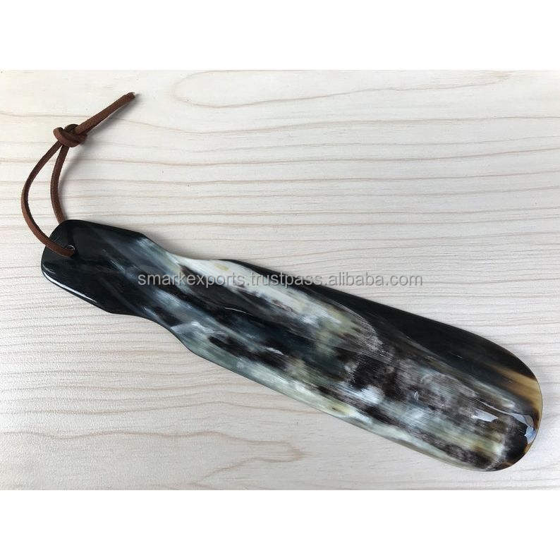 Premium Bull Horn Carved Angel Shoe Horn Handmade Long Durable Comfortable Natural Finish Tool for Men Women Travel