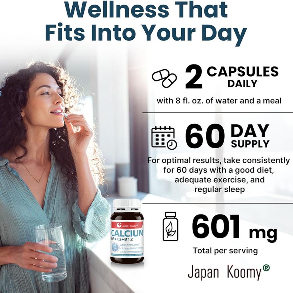 Capsules Premium Calcium D3+K2+B12 : Soutient la Fonction Osseuse et Musculaire – Supplément Calcium D3+K2+B12