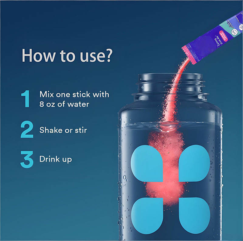 Mélanger 1 sachet (4,5 g) dans environ 150 ml d'eau.