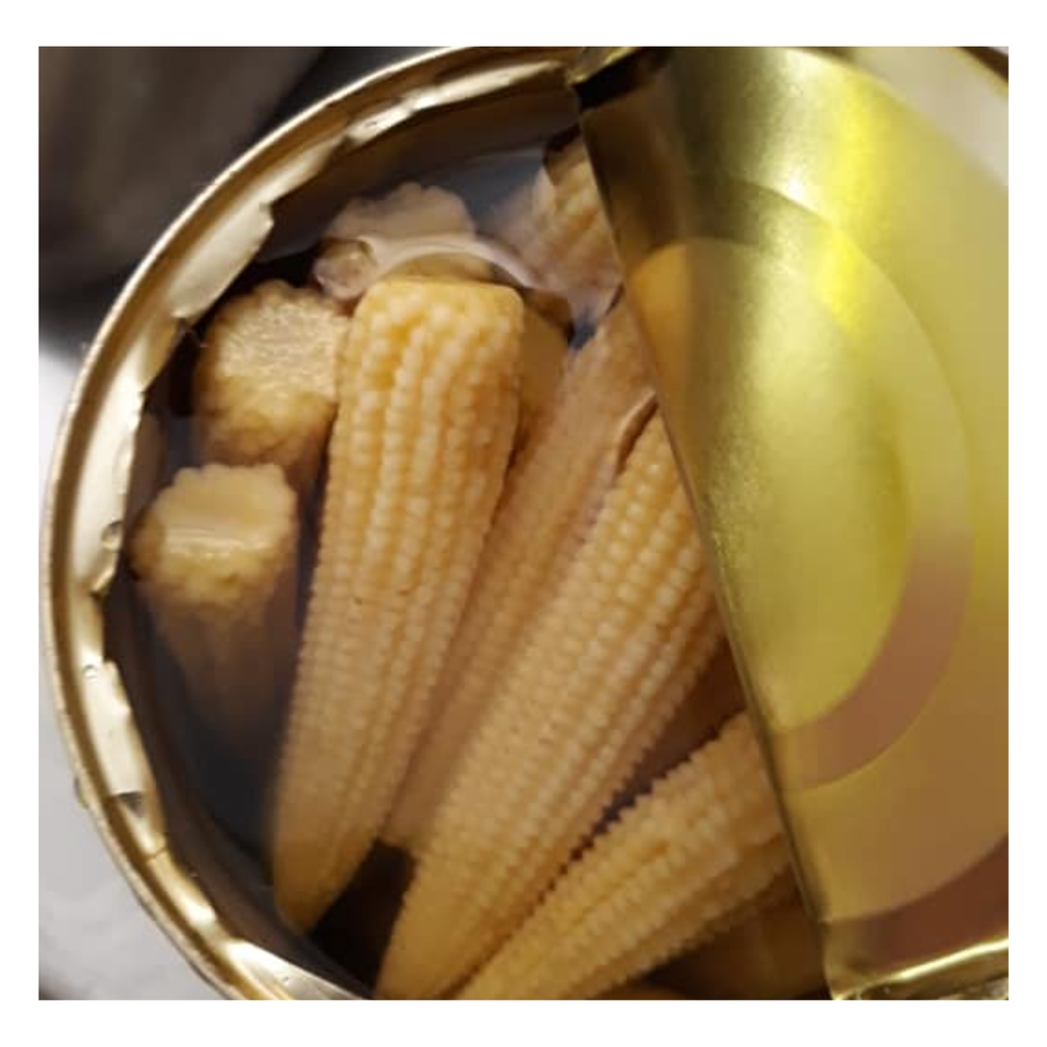 Raw material:Fresh baby corn, Water, Salt, Sugar, Acetic Acid