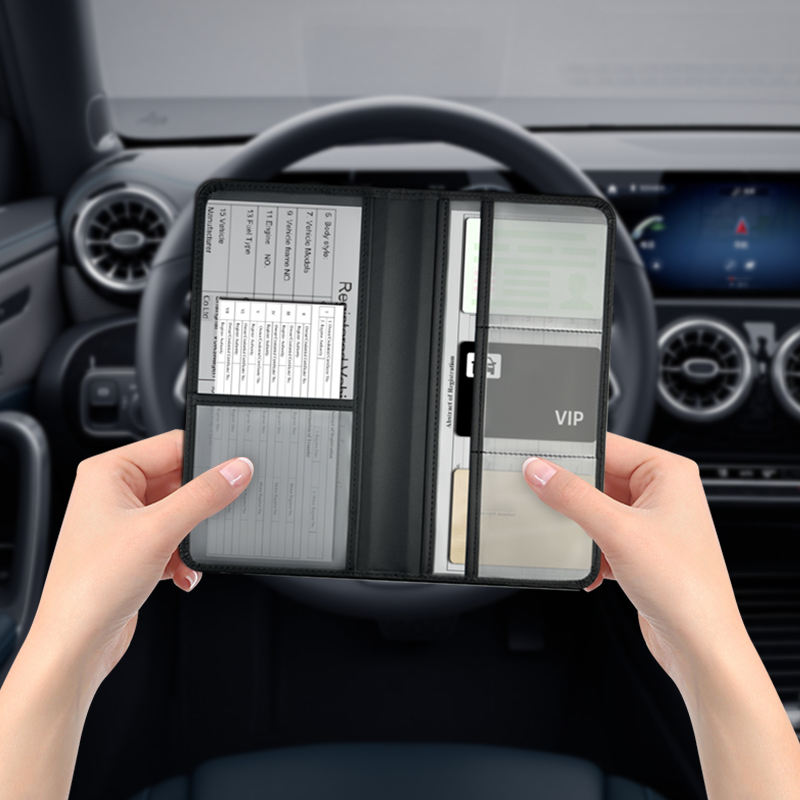 Porte-Papiers Premium pour Immatriculation et Assurance de Voiture Noir, Étui Organisateur Portefeuille pour Hommes Femmes