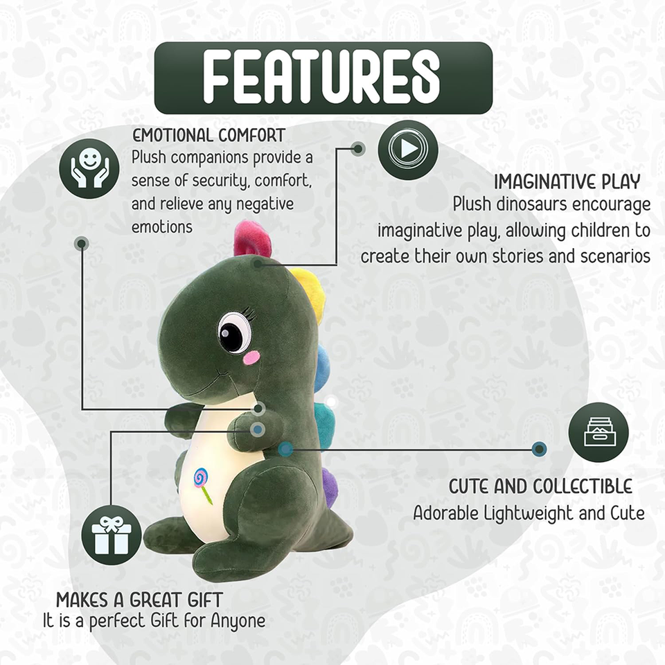 Premium Cartoon Animal Broderie Yeux Multi Couleur Pointes En Peluche Vert Dino Jouer Confort Câlin Jouet Dinosaure Animal En Peluche Pack