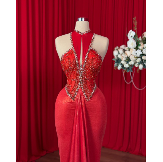 Robe de soirée sirène de classe supérieure pour femmes, longueur au sol, ornée de perles, sur mesure, en maille respirante, broderie artisanale, légère pour