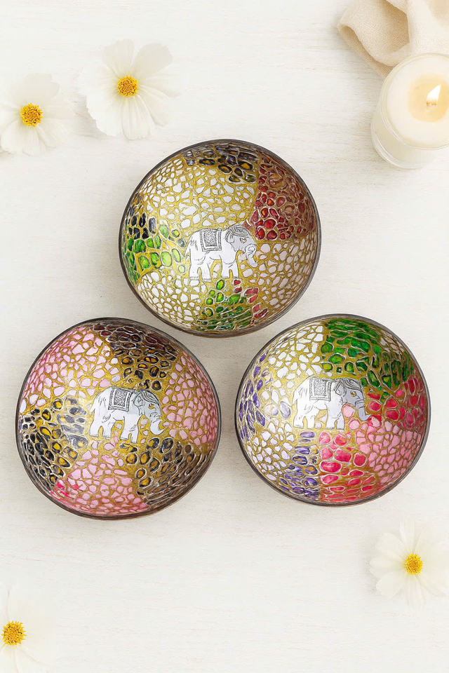 Premium Coconut Bowl Decorative Mosaic Finish Eco-Friendly Handicraft Luxury Smoothie Salad Serving