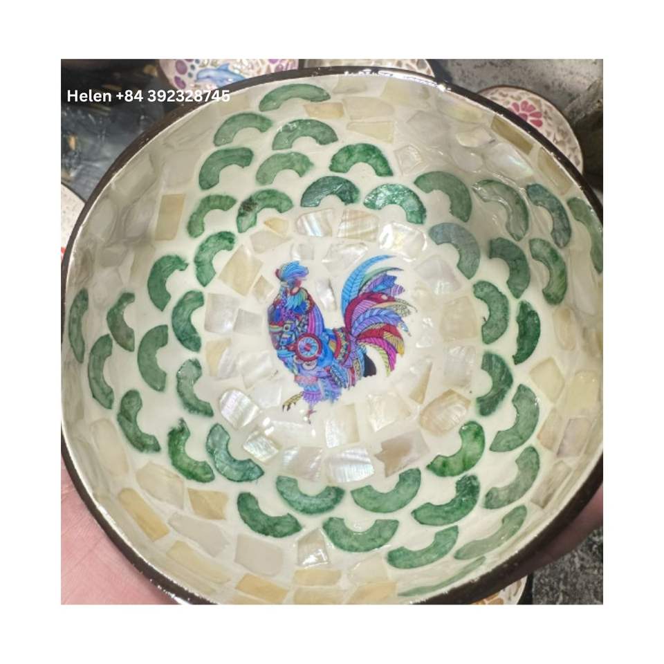 Bol en coquille de noix de coco de qualité supérieure avec incrustation de coquille de nacre Conception de motif de beauté faite à la main comprend une cuillère-Prix économique Vietnam