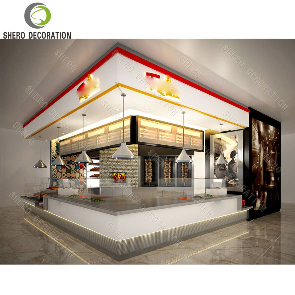 Conception de kiosque de centre commercial de café haut de gamme, conception moderne de vitrine de café avec éclairage LED, vitrine de présentation de café