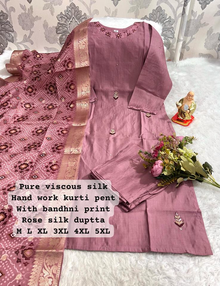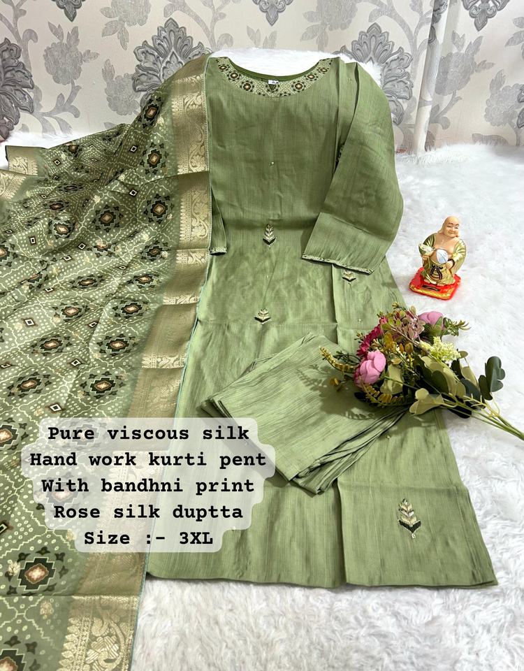 Nom du produit:Haute Qualité Mousseline De Soie Avec Handwork Kurti Pant Et Dupatta