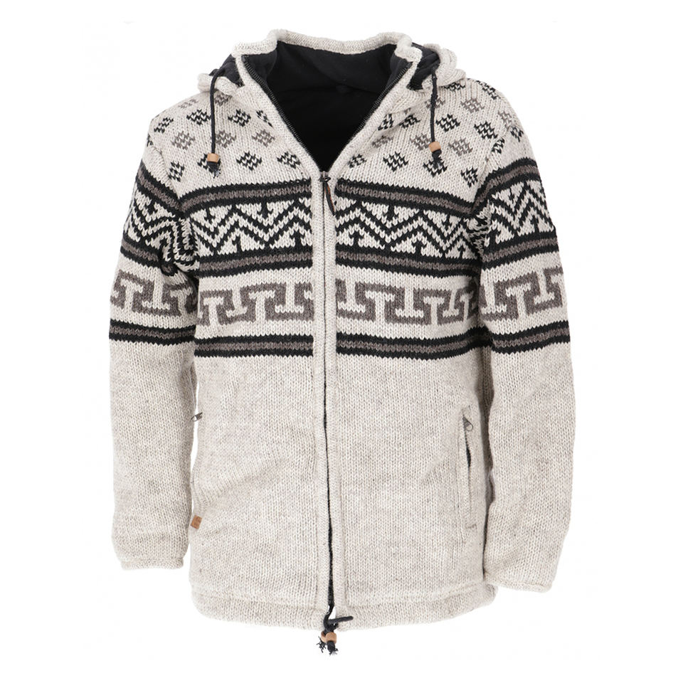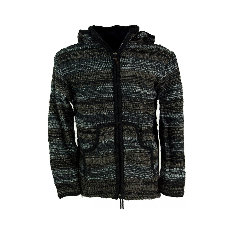 Veste bomber en laine vintage faite à la main de la collection premium Himalaya, col montant, tricotée à la main, lavée, coupe-vent du Népal