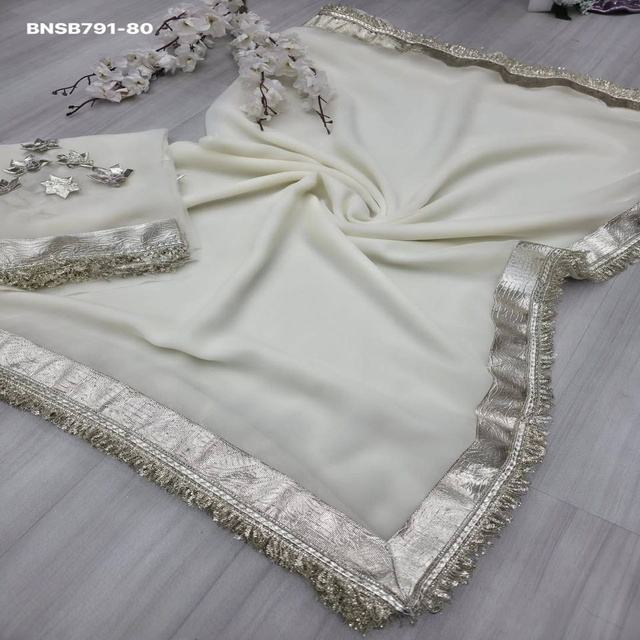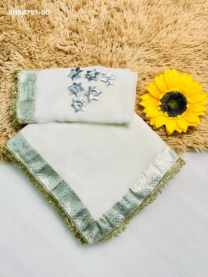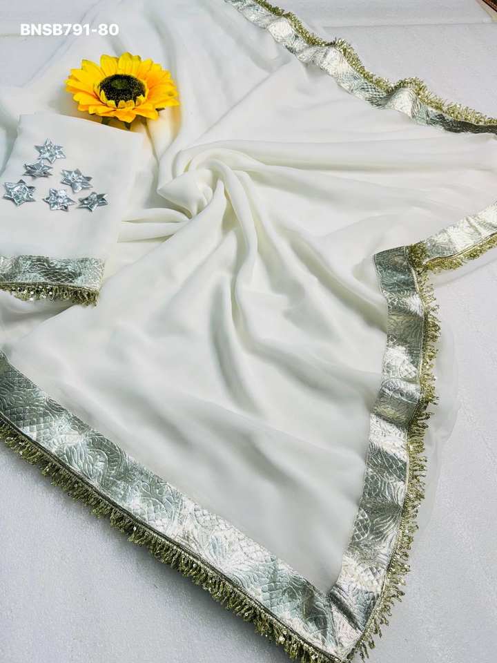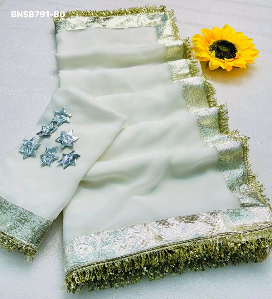 Chiffon with Less Work-Border Saree & Designer Blouse Set