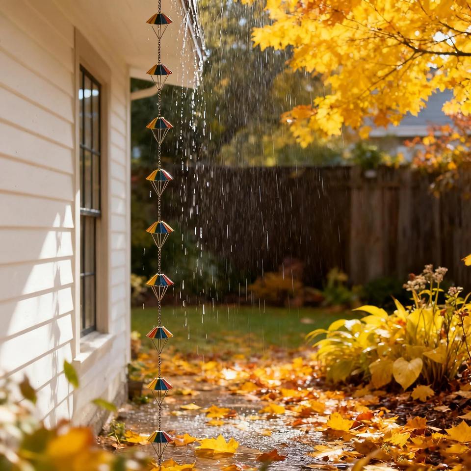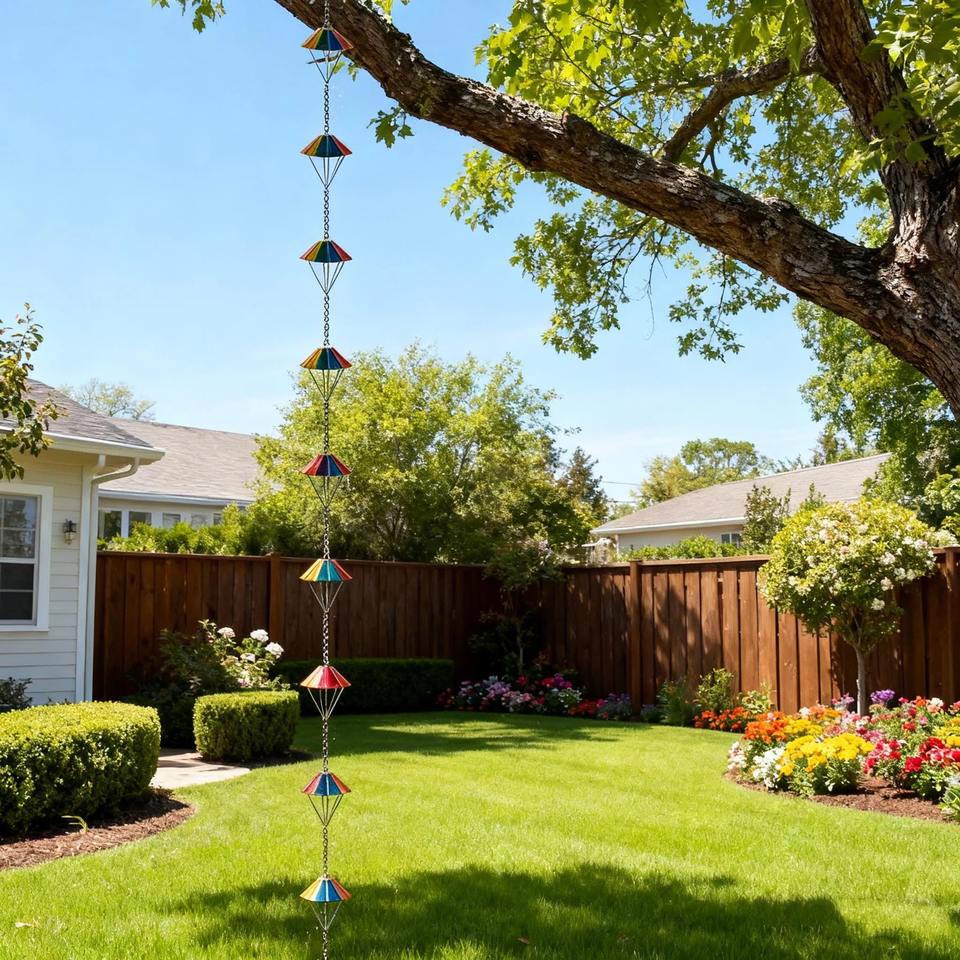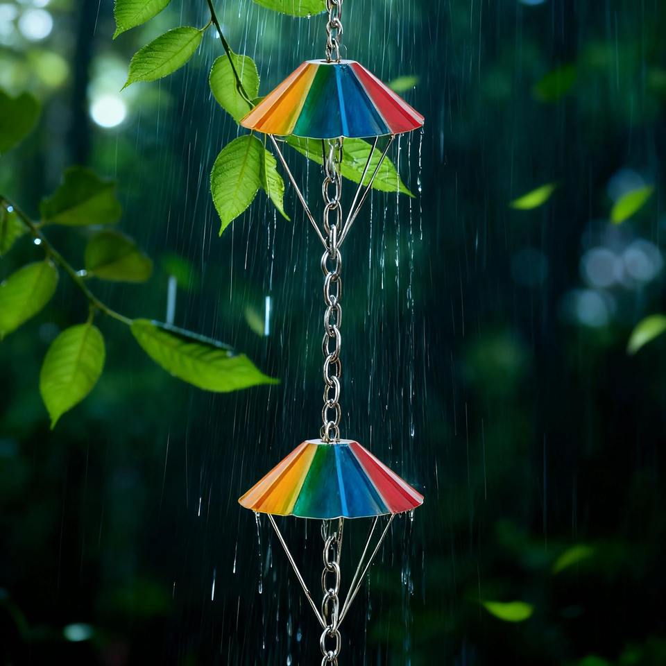 Chaîne de pluie artisanale colorée de qualité supérieure, ajoute un élément ludique et artistique au flux d'eau dans les jardins et les espaces extérieurs.