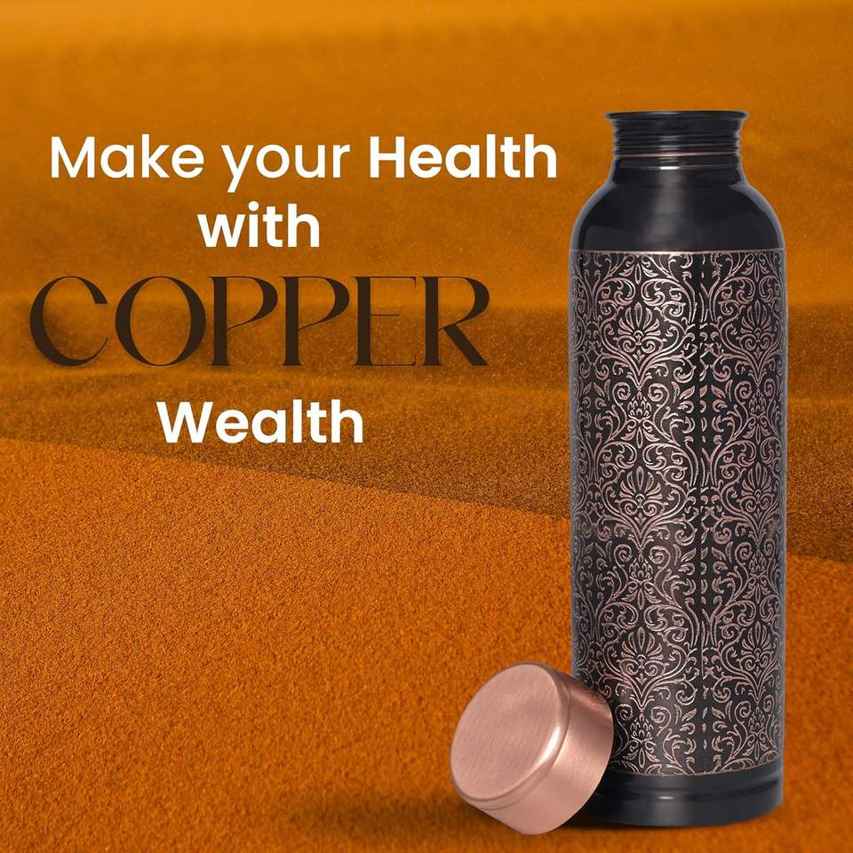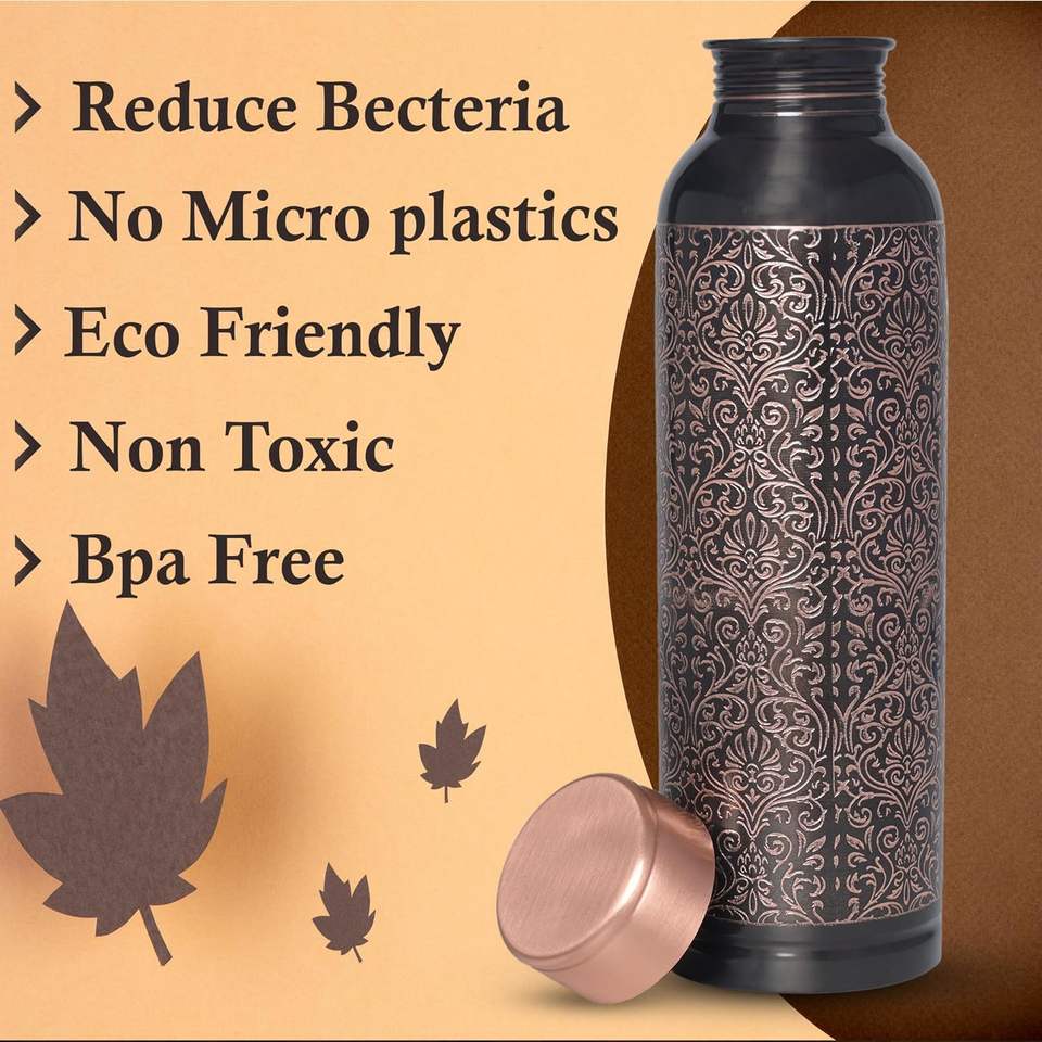 Bouteille d'eau de sculpture en cuivre de qualité supérieure avec finition brillante de conception antique noire Bouteille sans joint de 1000ml et étanche disponible