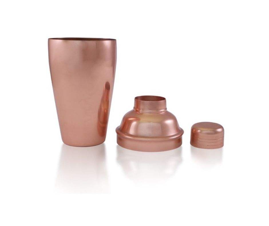 Ensemble de shaker à cocktails en acier inoxydable avec finition cuivre écologique de qualité supérieure, couvercle et bouchon doseur (style Boston, accessoires de bar)