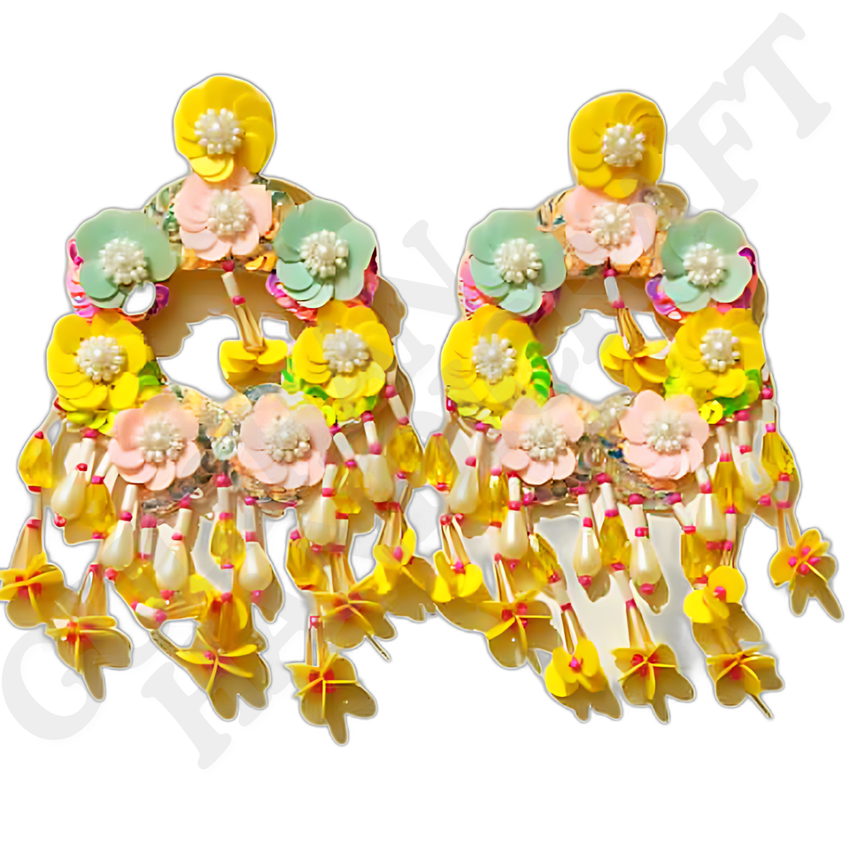 Boucles d'oreilles en tissu de coton de qualité supérieure, couleurs personnalisées, broderie en forme de cœur, perles, fabrication artisanale, taille personnalisable, pour femmes, pour les fêtes