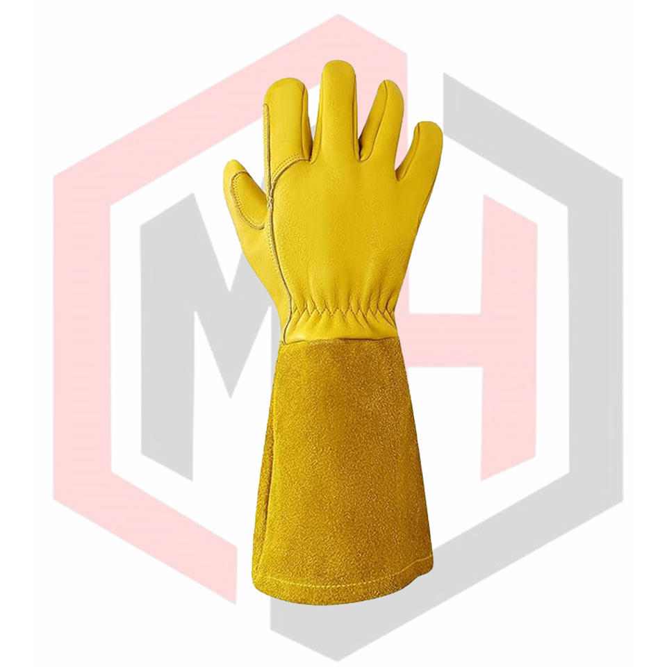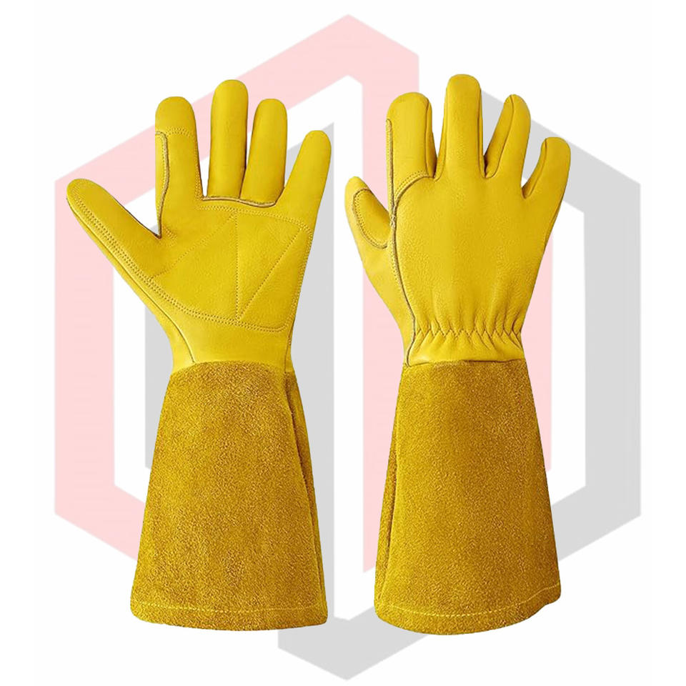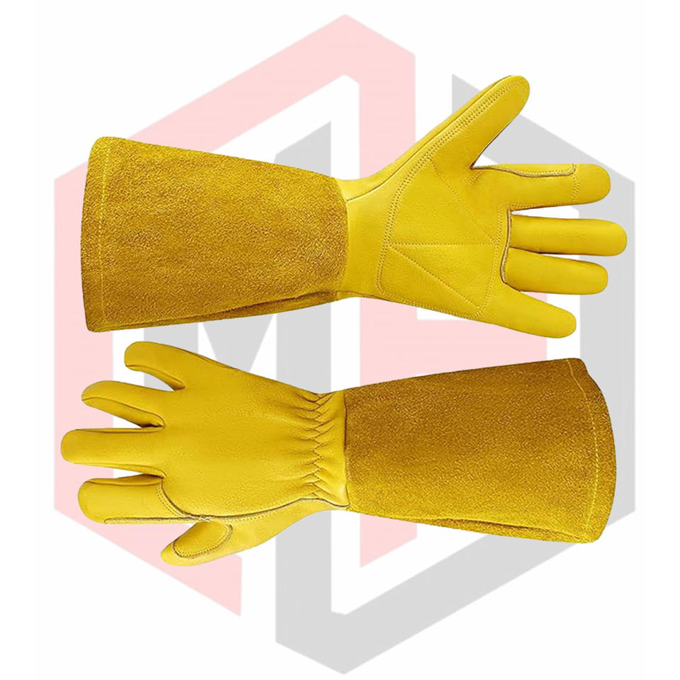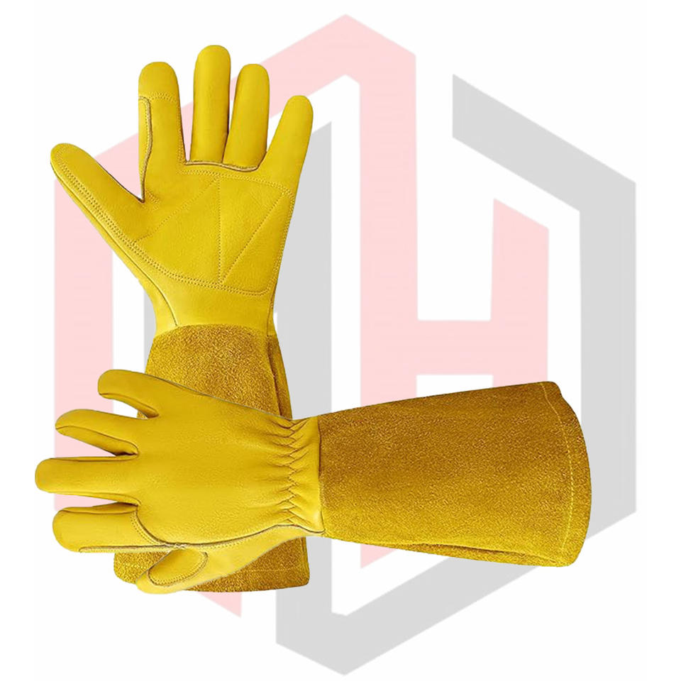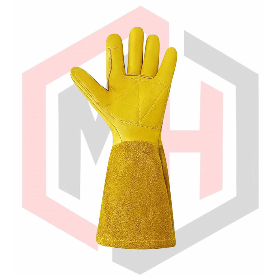 Gants de soudage en cuir de vachette jaune de qualité supérieure, personnalisés, longueur de 14 pouces, gants de sécurité durables, antidérapants, respirants