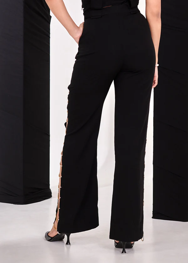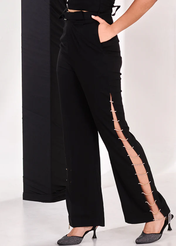 Pantalon large en crêpe noir orné de strass pour femme, coupe ample, léger, idéal pour les soirées et les occasions spéciales, tissu doux et confortable, tendance
