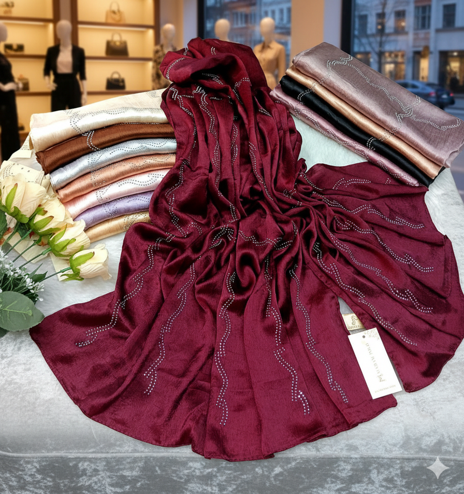 Ensemble de hijabs en chiffon froissé de qualité supérieure, coton/lin satiné/polyester - Collection de 12 pièces, respirant, élégant, floral, avec strass