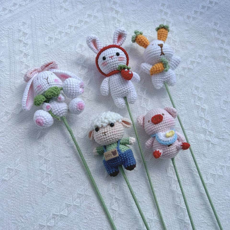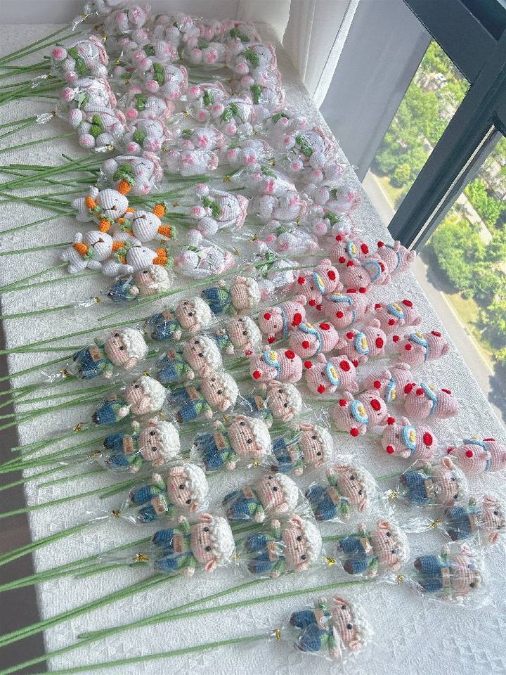 Bouquet de cochons en crochet de qualité supérieure - Bouquet de fleurs en animaux tricotés à la main exquis de haute qualité Cadeau