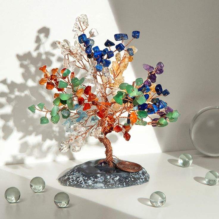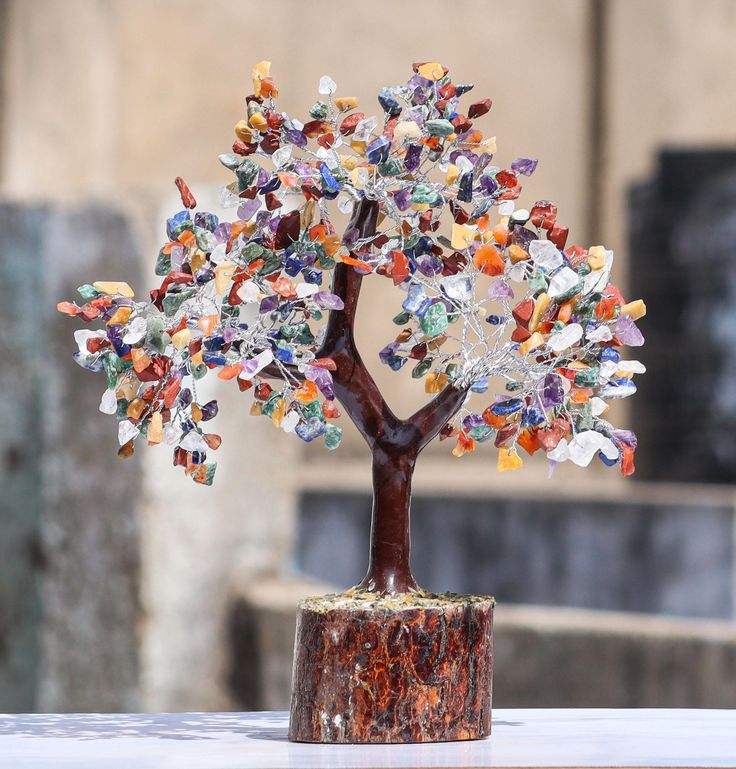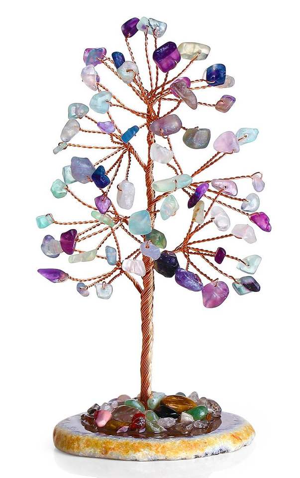 Arbre de pierres précieuses en cristal de qualité supérieure avec base en tranche d'agate Arbre Feng Shui multi-pierres Arbres en cristal en gros Acheter chez Aameena Agate