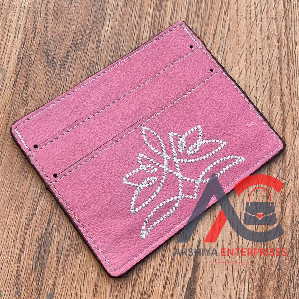 Genuine Leather Boot Stitch Credit Card Holder Wallet