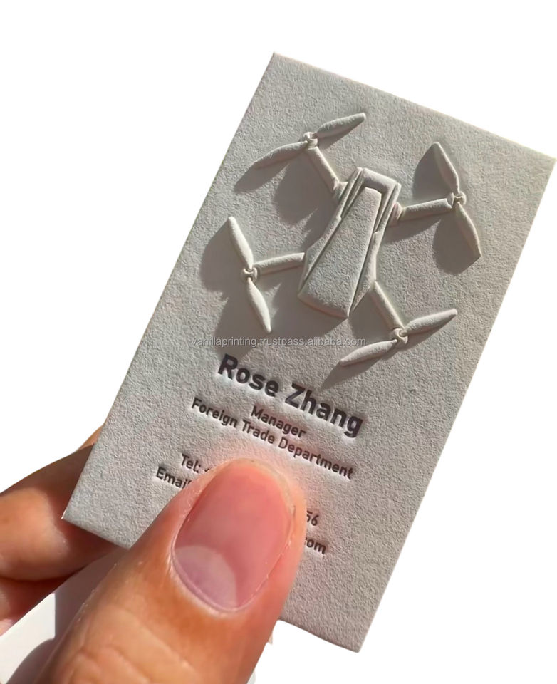 Cartes de visite personnalisées de qualité supérieure gaufrage en relief coton de qualité supérieure sans couleur offset gaufré design en relief carton personnalisable