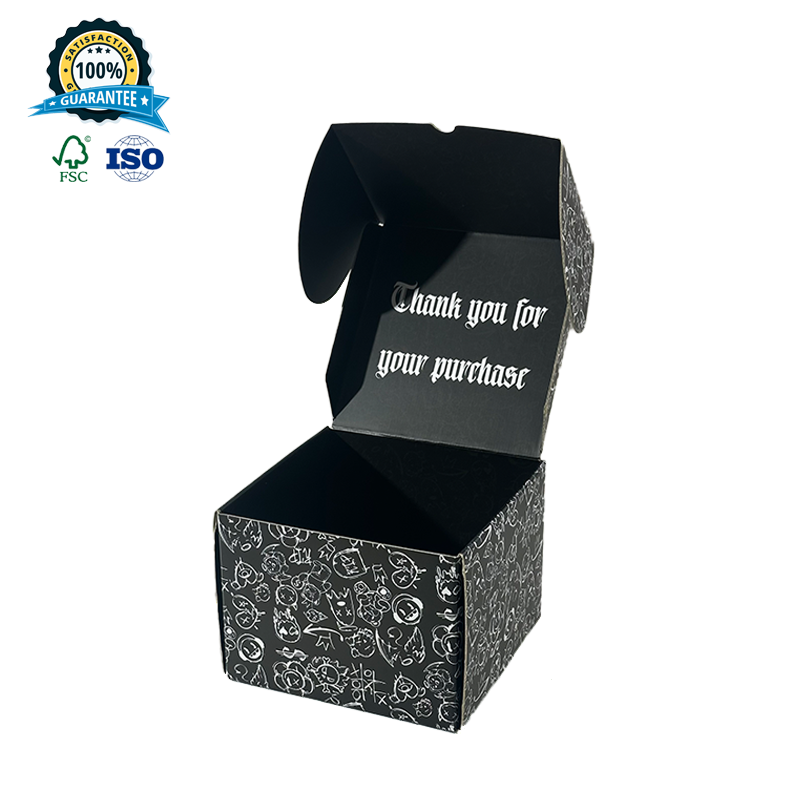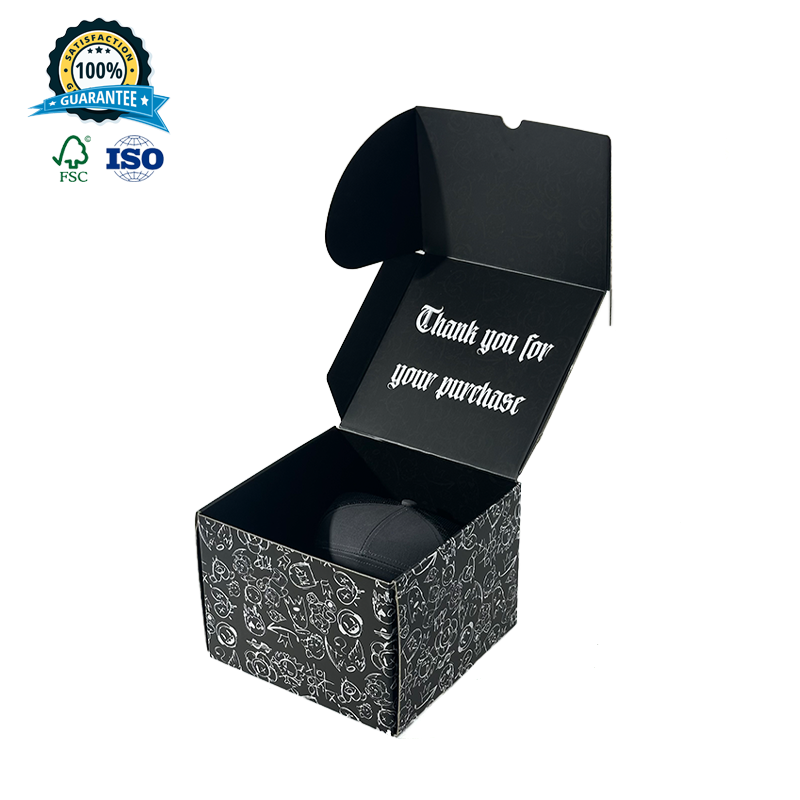 Boîtes cadeaux personnalisées haut de gamme, boîte d'expédition en carton ondulé noire hip-hop pour casquette de camionneur, impression de t-shirt