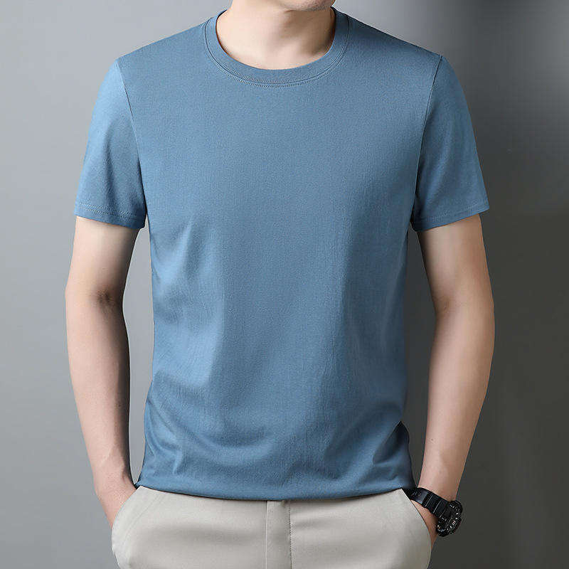 T-shirt unisexe personnalisé avec logo, grande taille, couleur unie, manches courtes, en coton peigné respirant, léger, décontracté et doux pour l'été